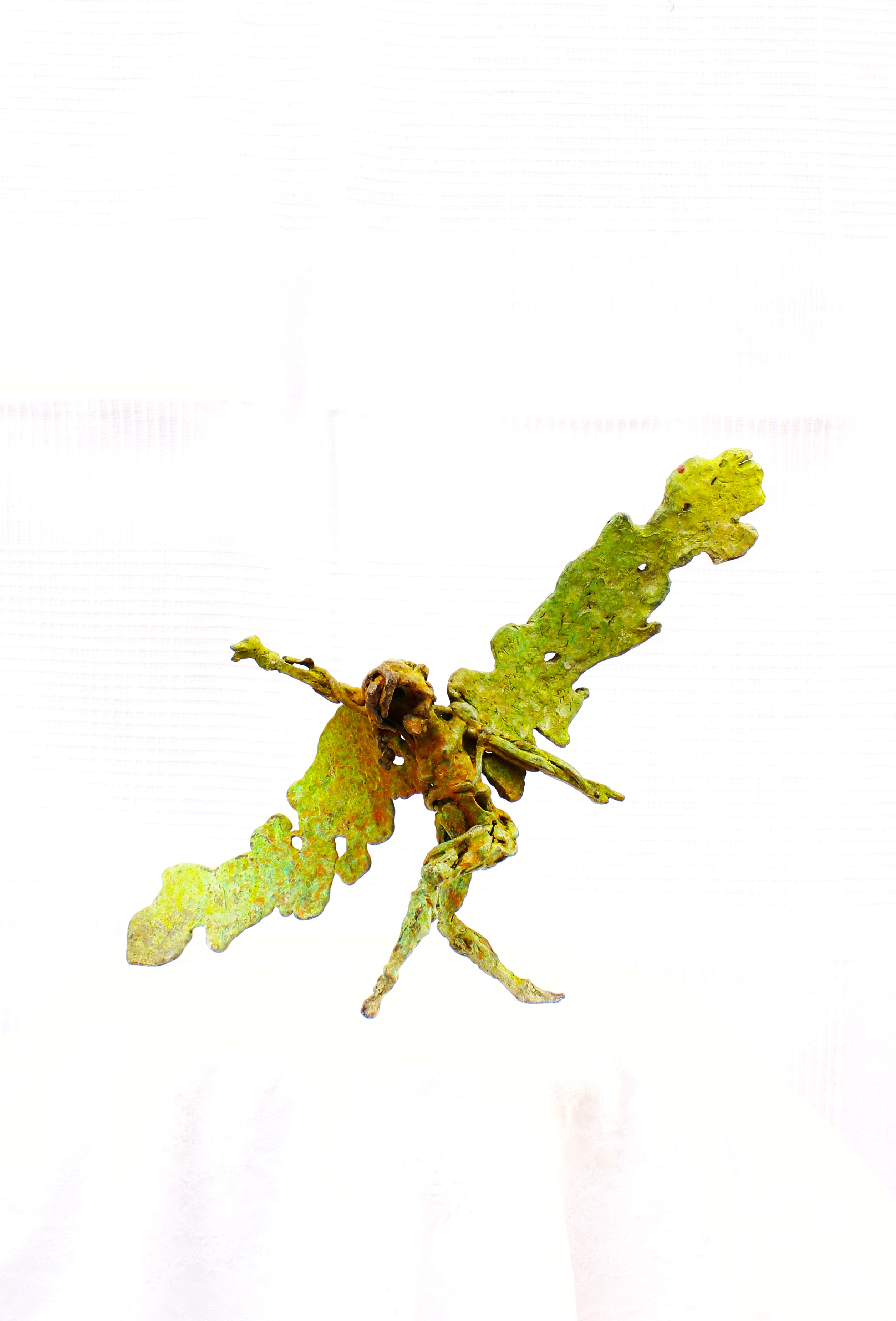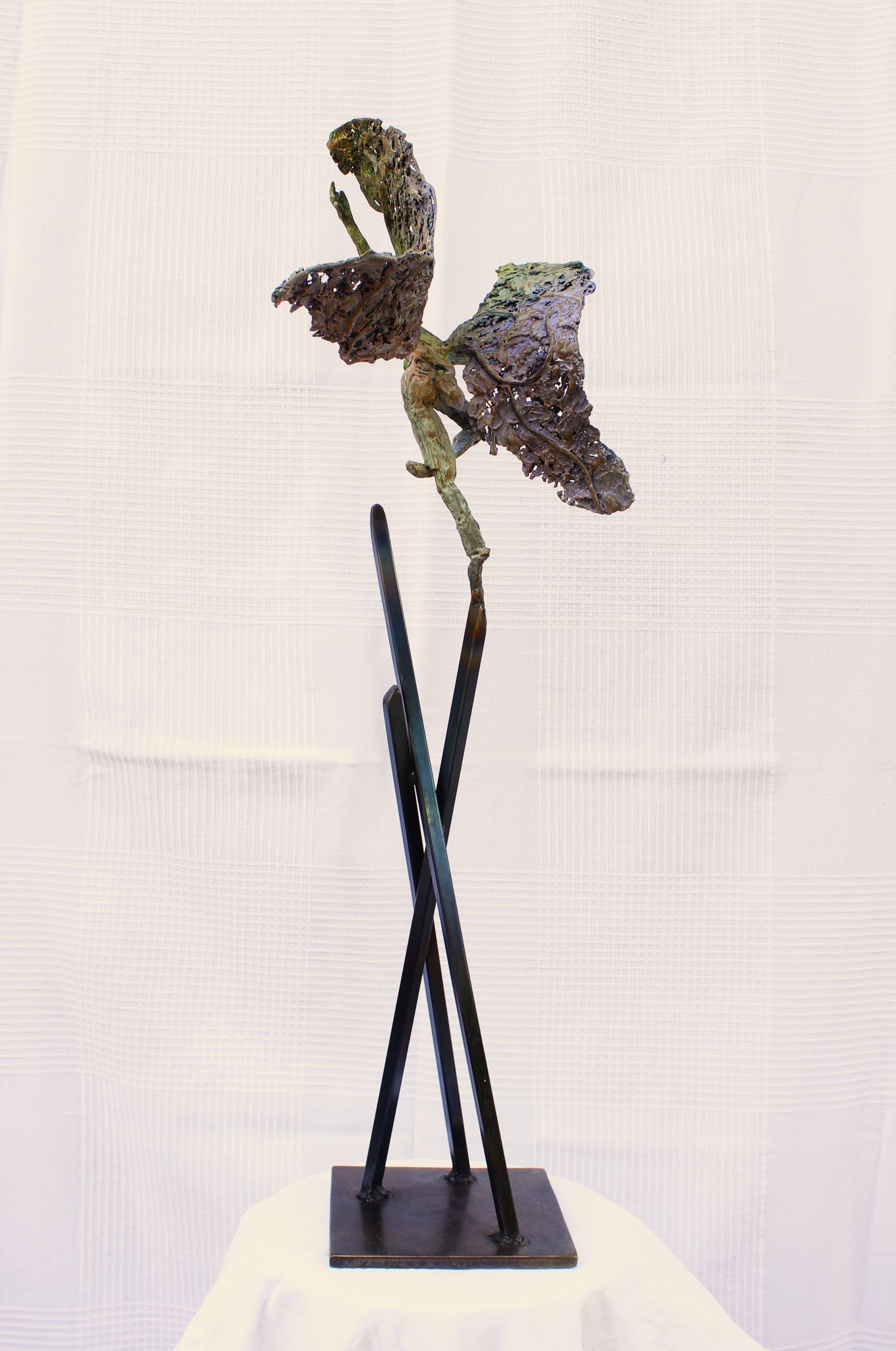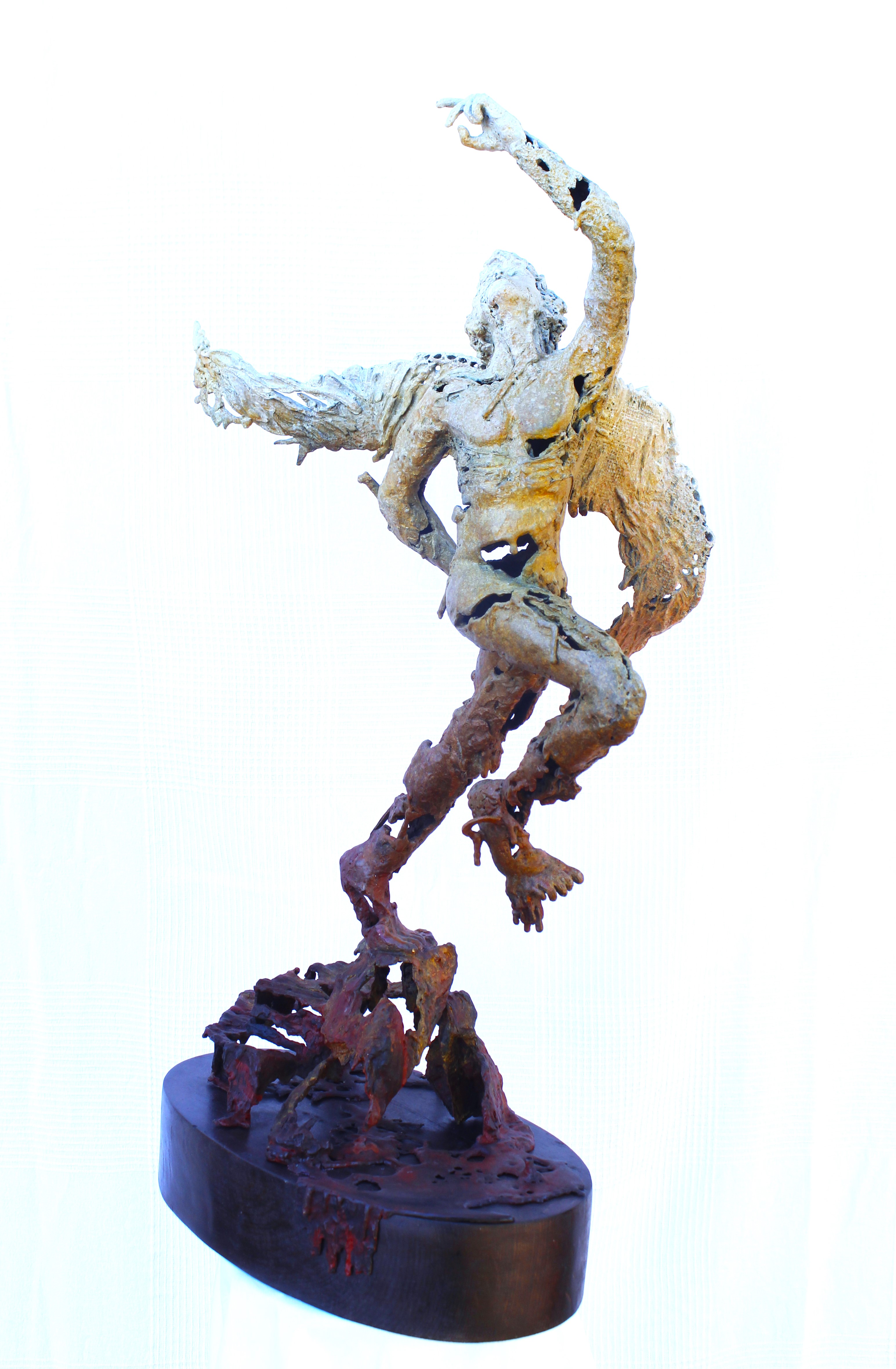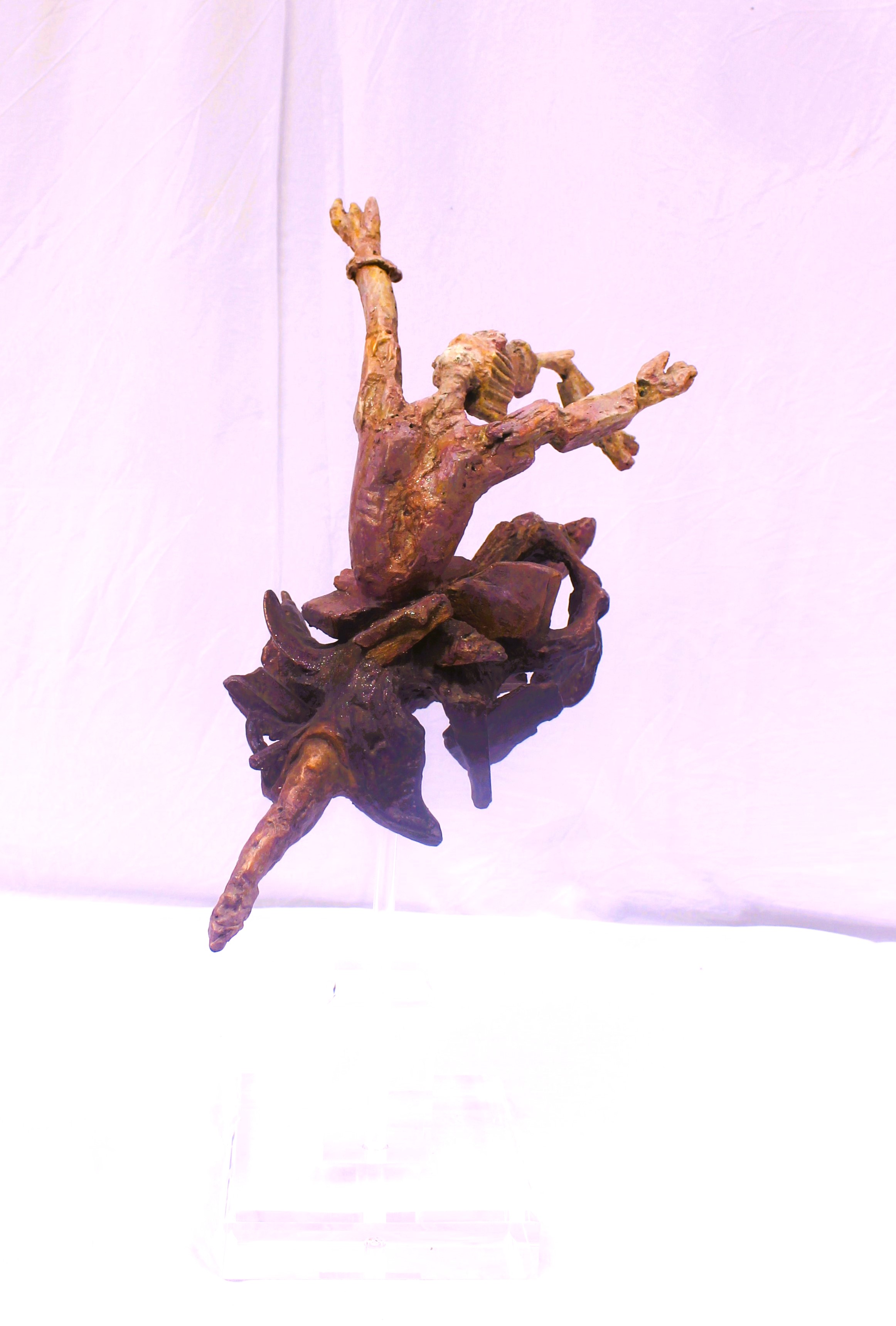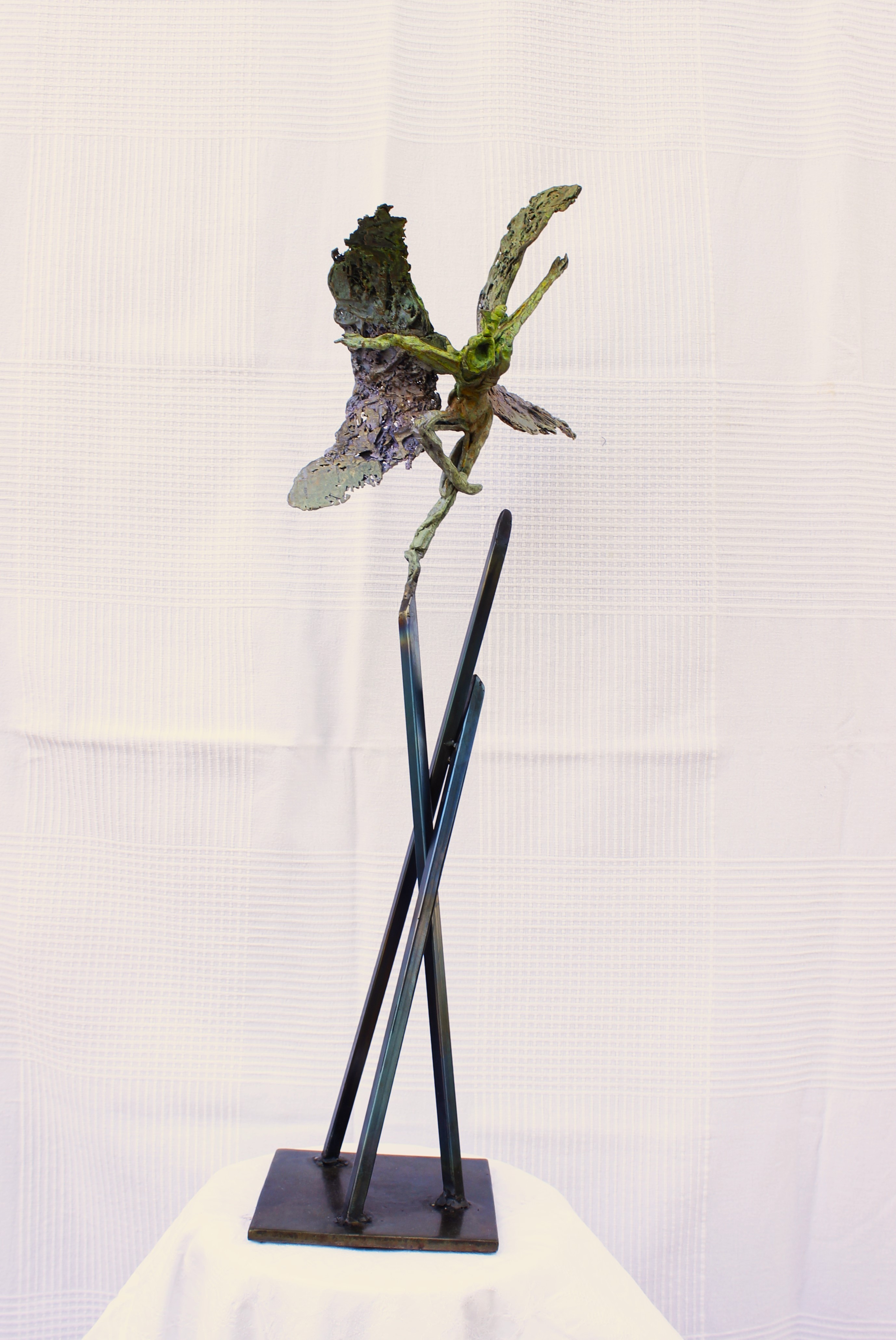 hacia el firmamento que indica todo lo contrario, deseo de libertad. La composición y dinamismo de las extremidades, la colocación de las alas, así como los colores empleados en la pátina, sugieren la elevación y ascensión de la figura desde el infierno hacia el cielo, en forma de ángel, y simboliza la remisión del Mal frente al triunfo del Bien.