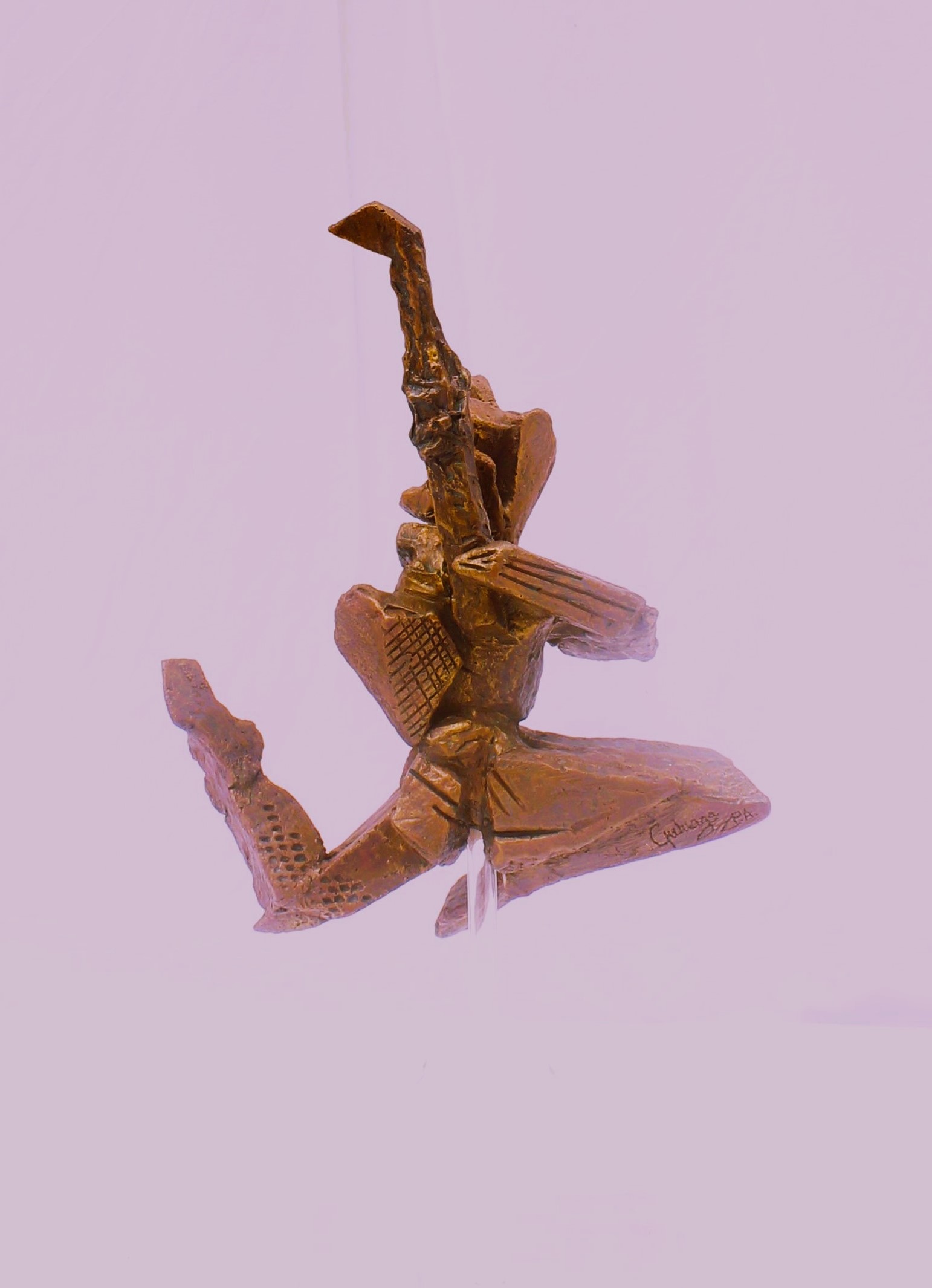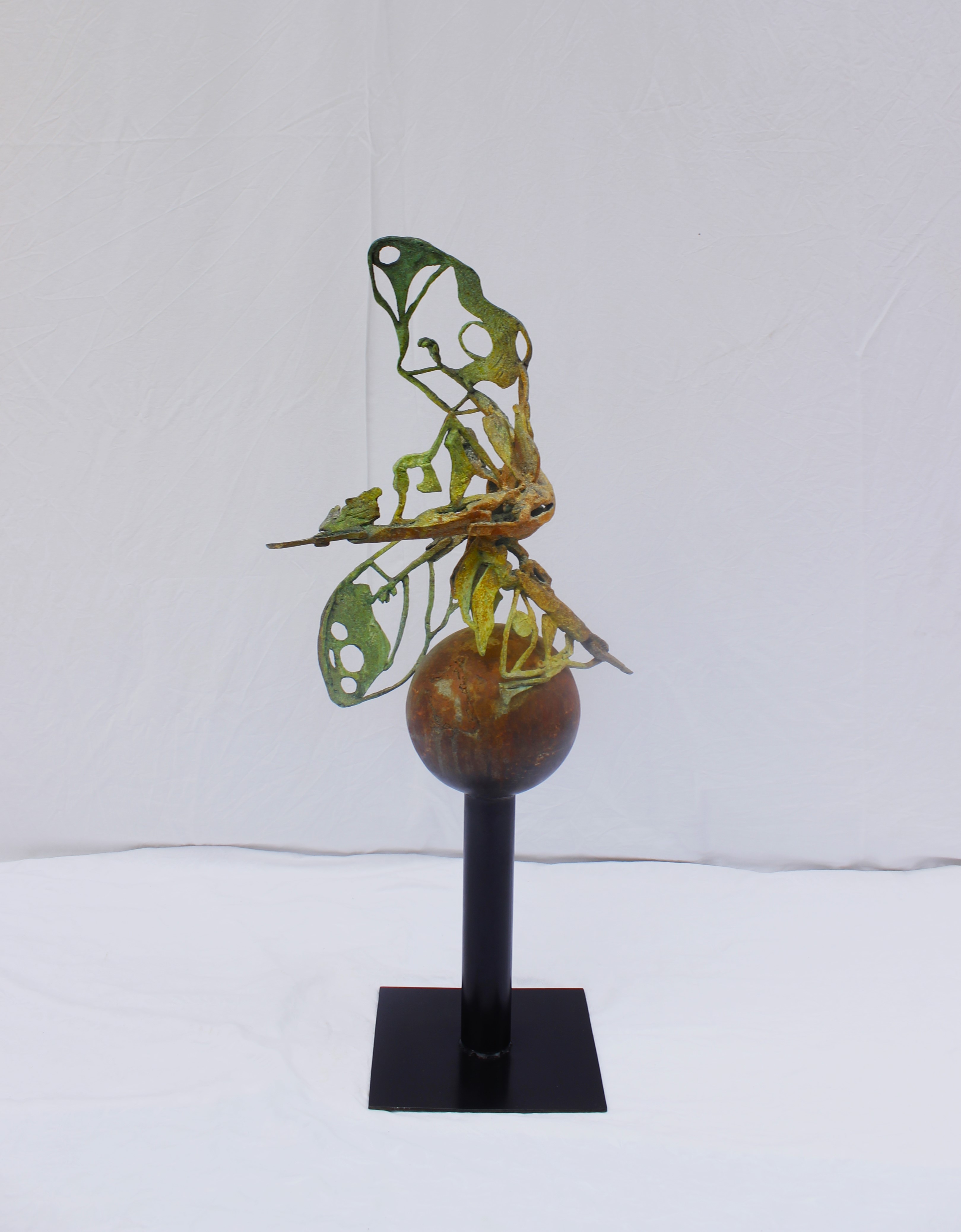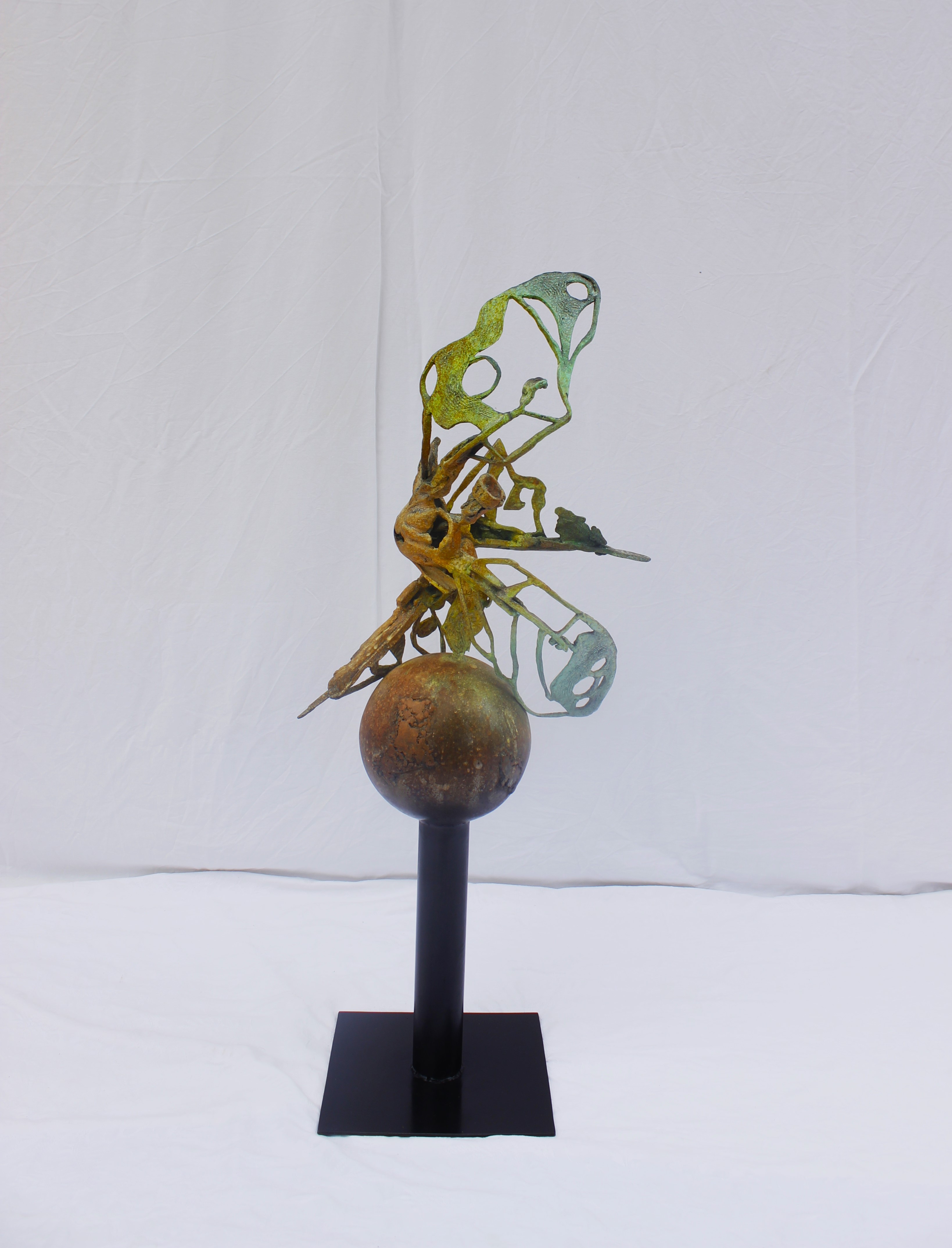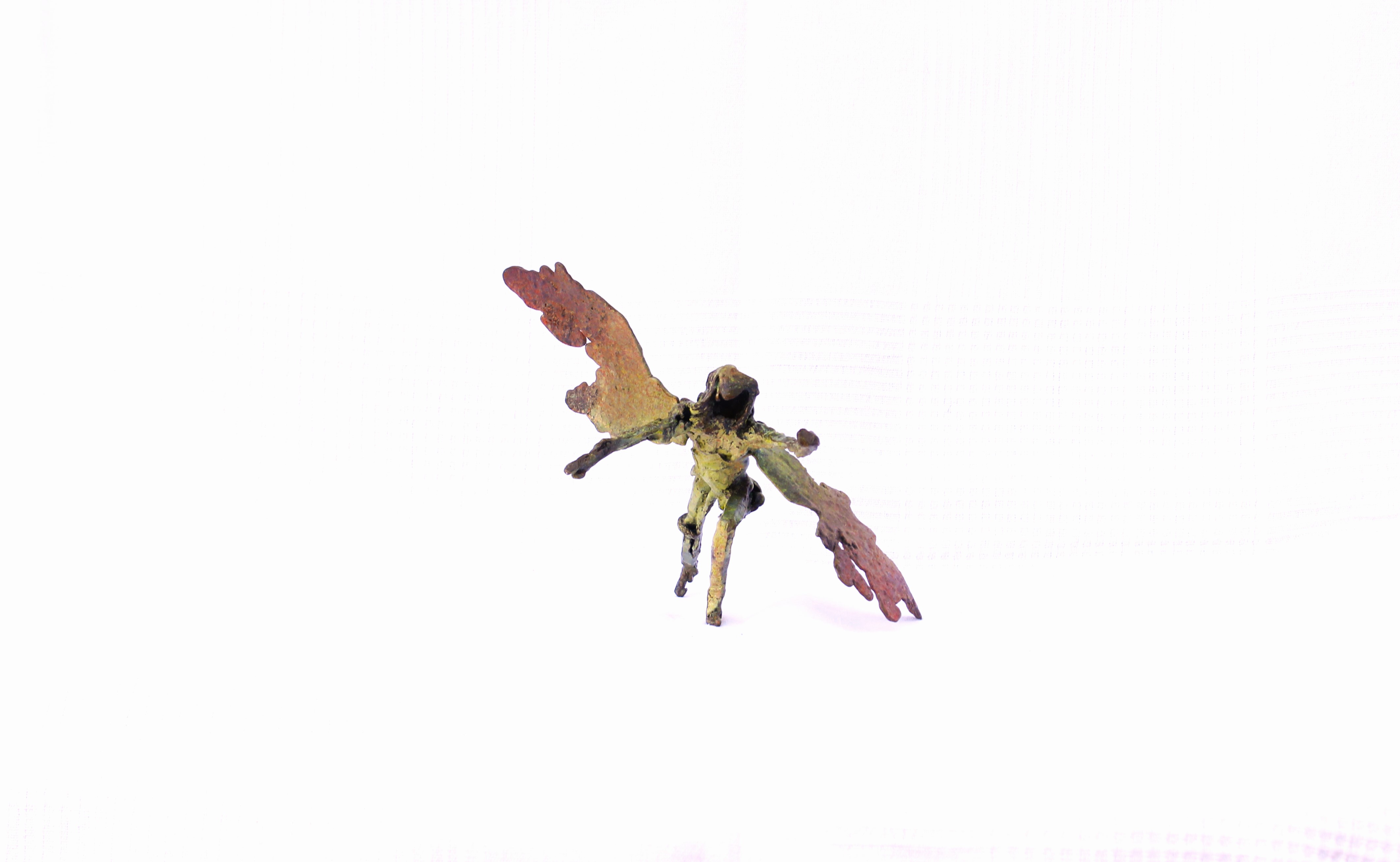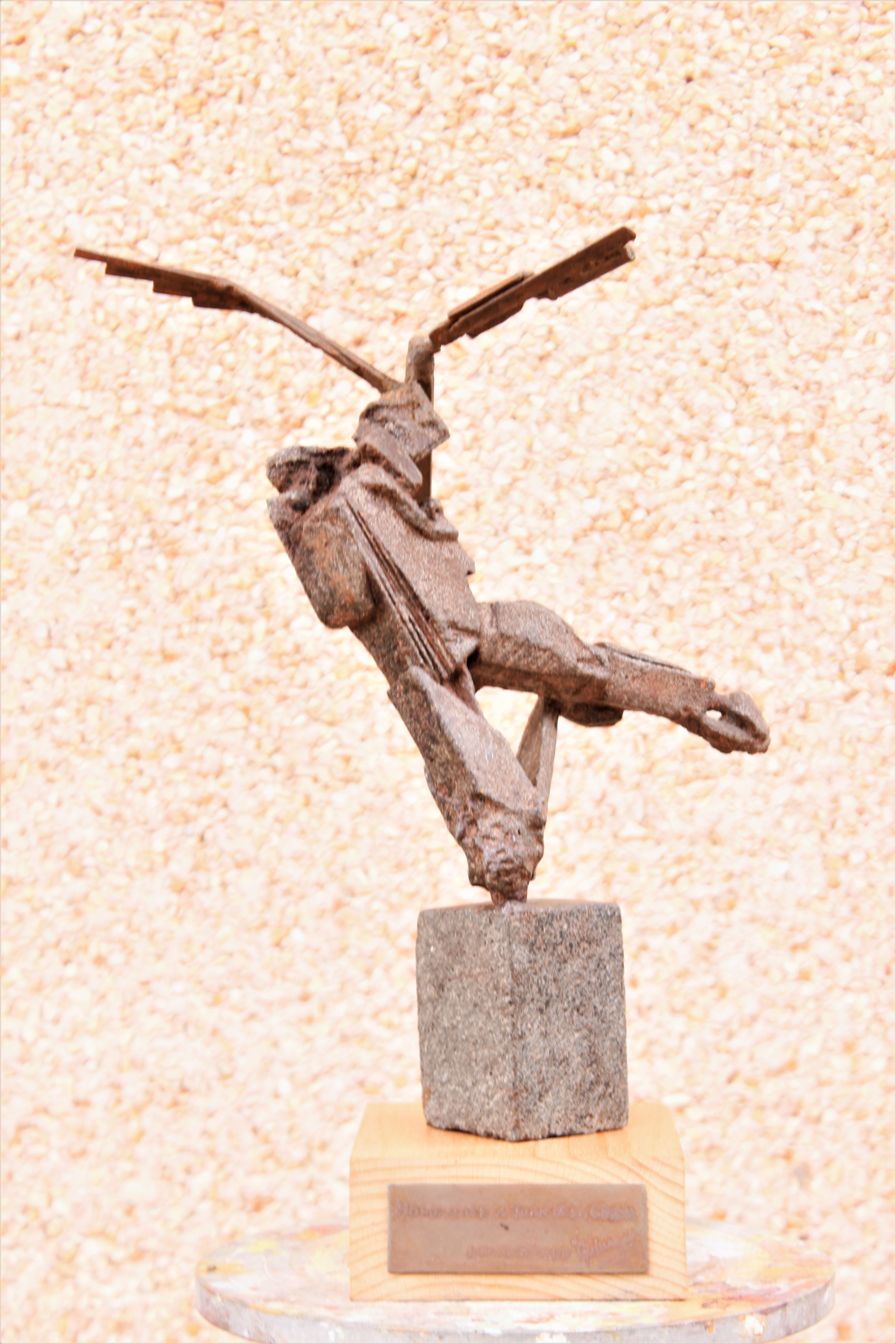 hacia el firmamento que indica todo lo contrario, deseo de libertad. La composición y dinamismo de las extremidades, la colocación de las alas, así como los colores empleados en la pátina, sugieren la elevación y ascensión de la figura desde el infierno hacia el cielo, en forma de ángel, y simboliza la remisión del Mal frente al triunfo del Bien.
