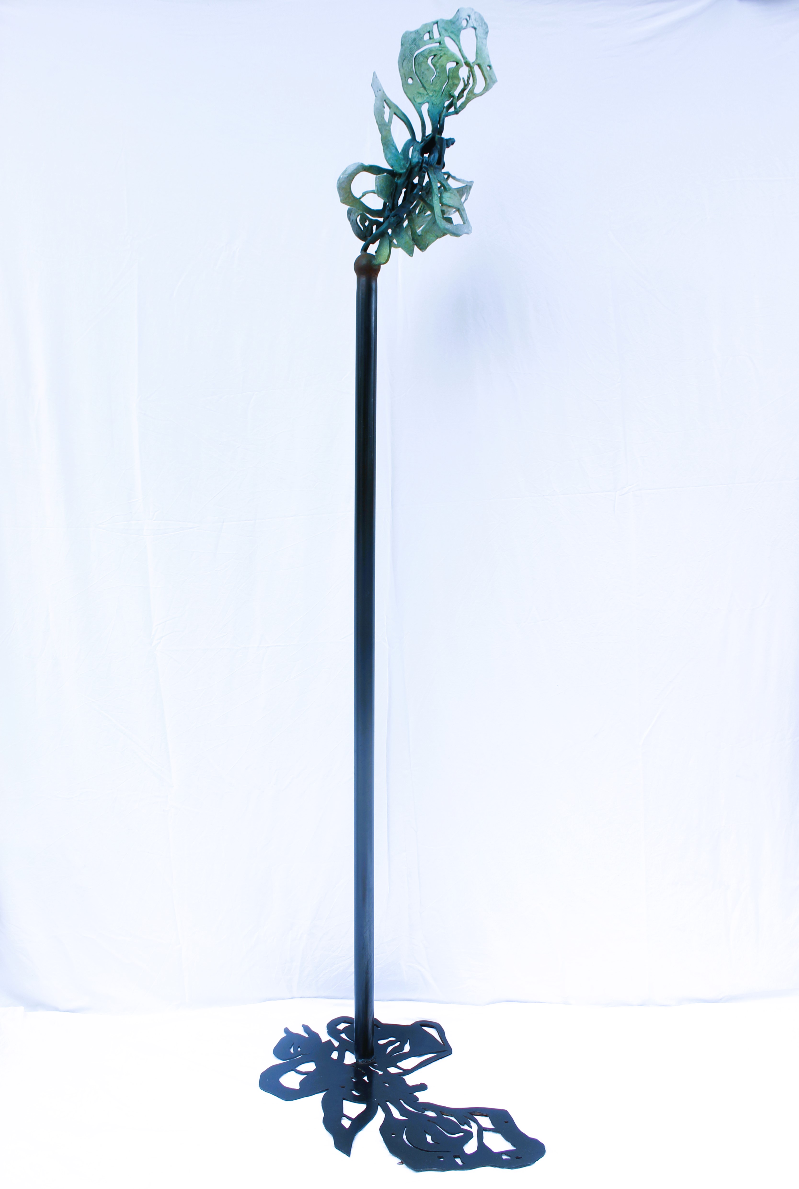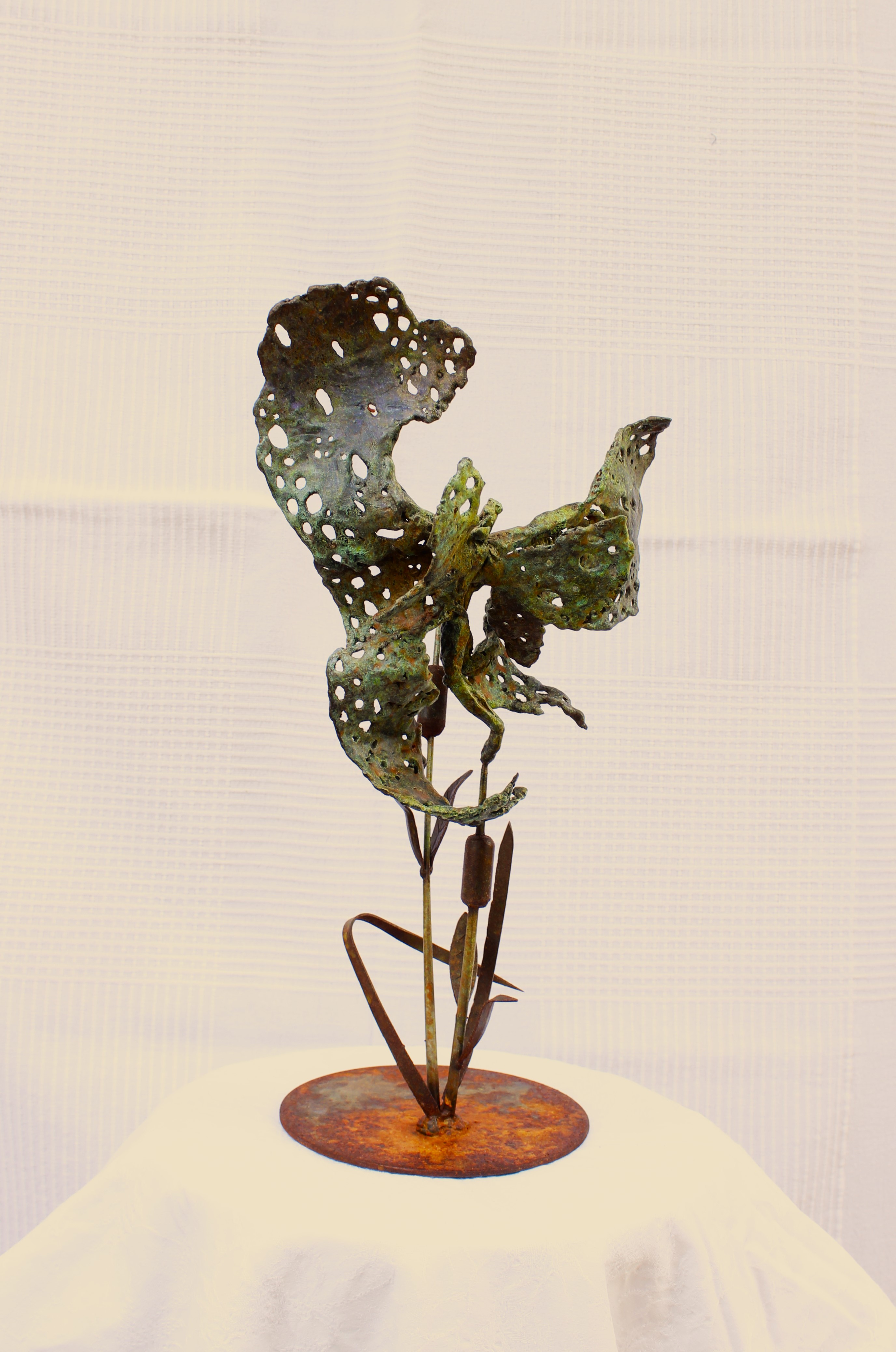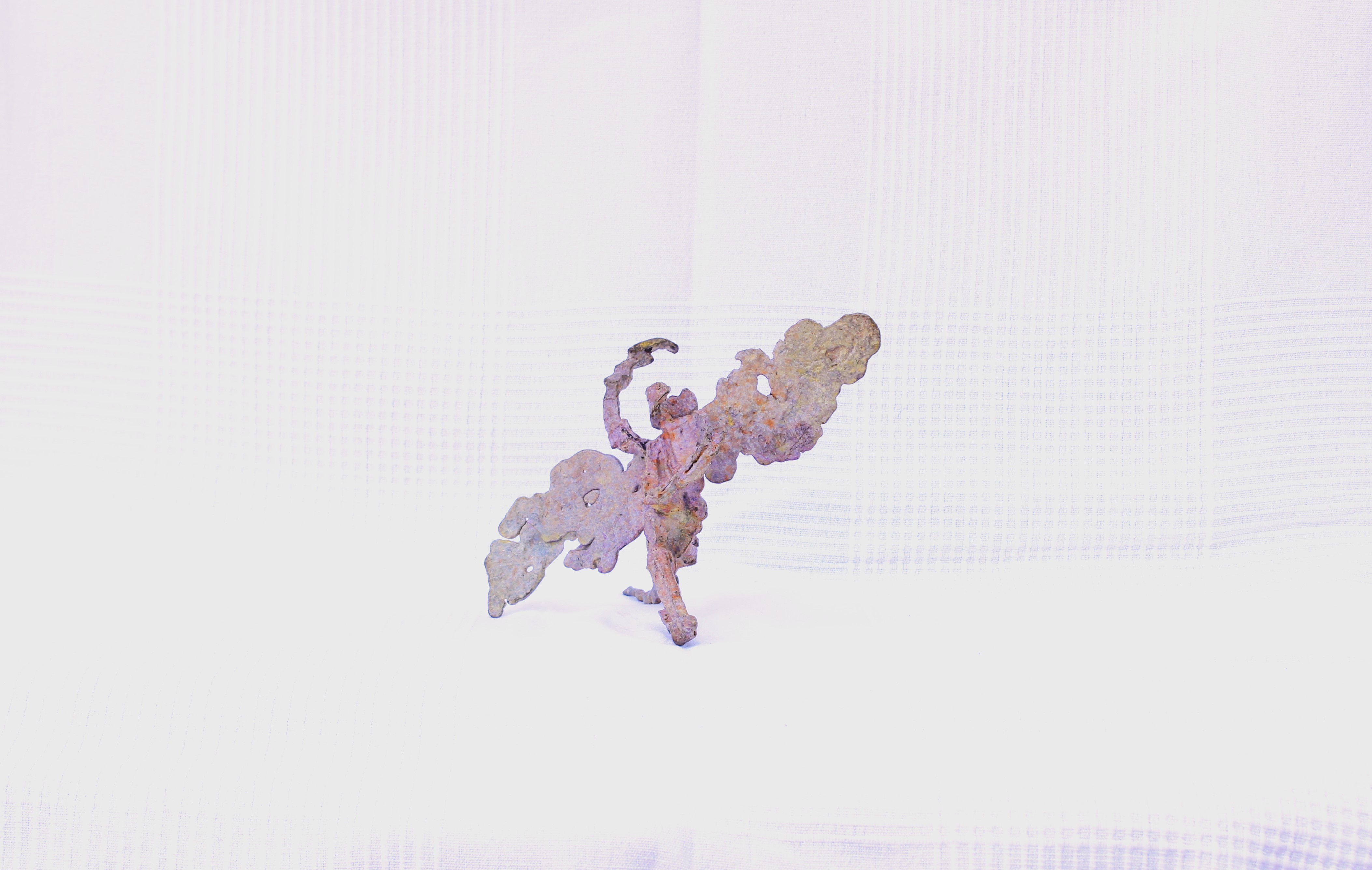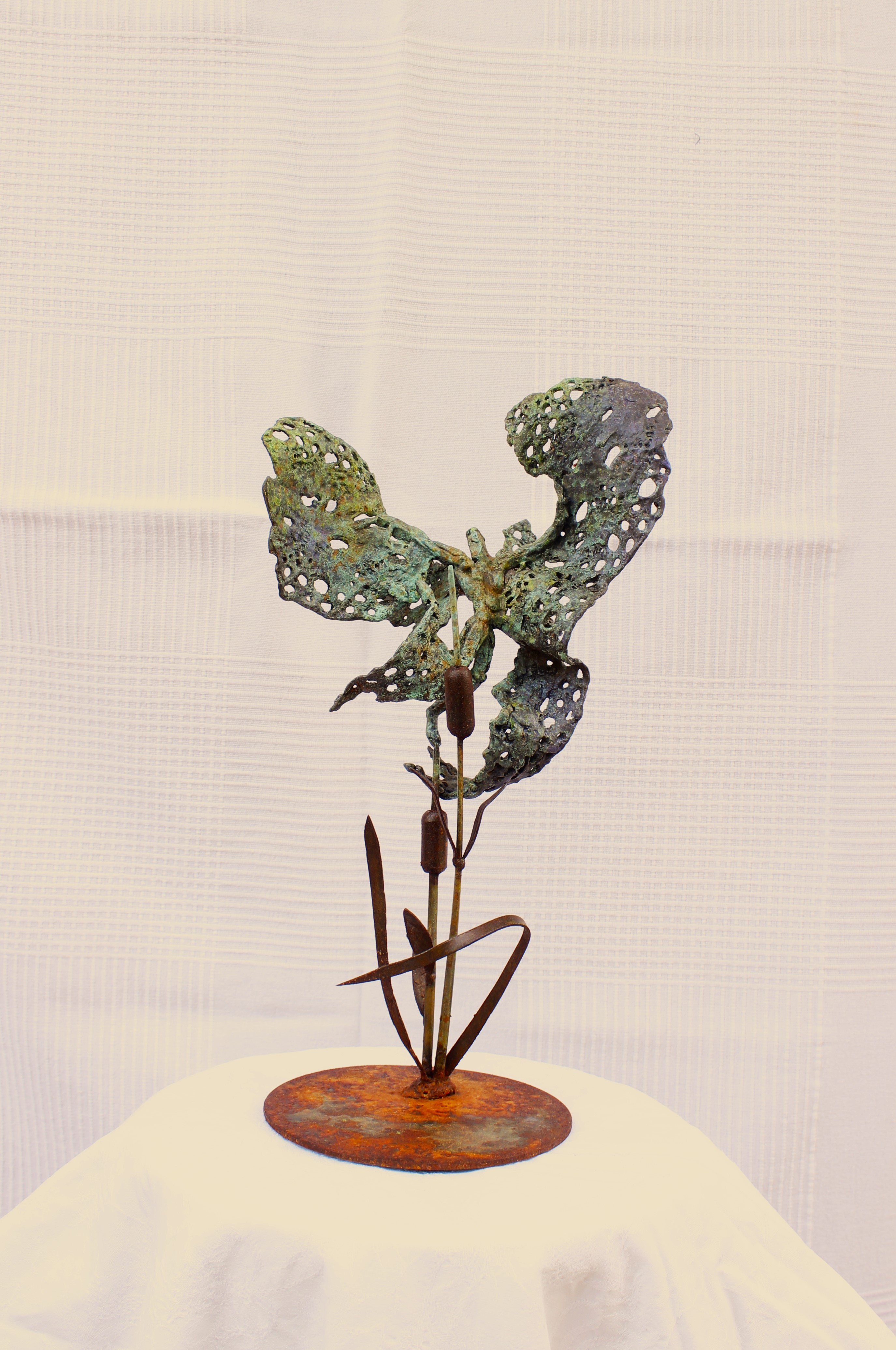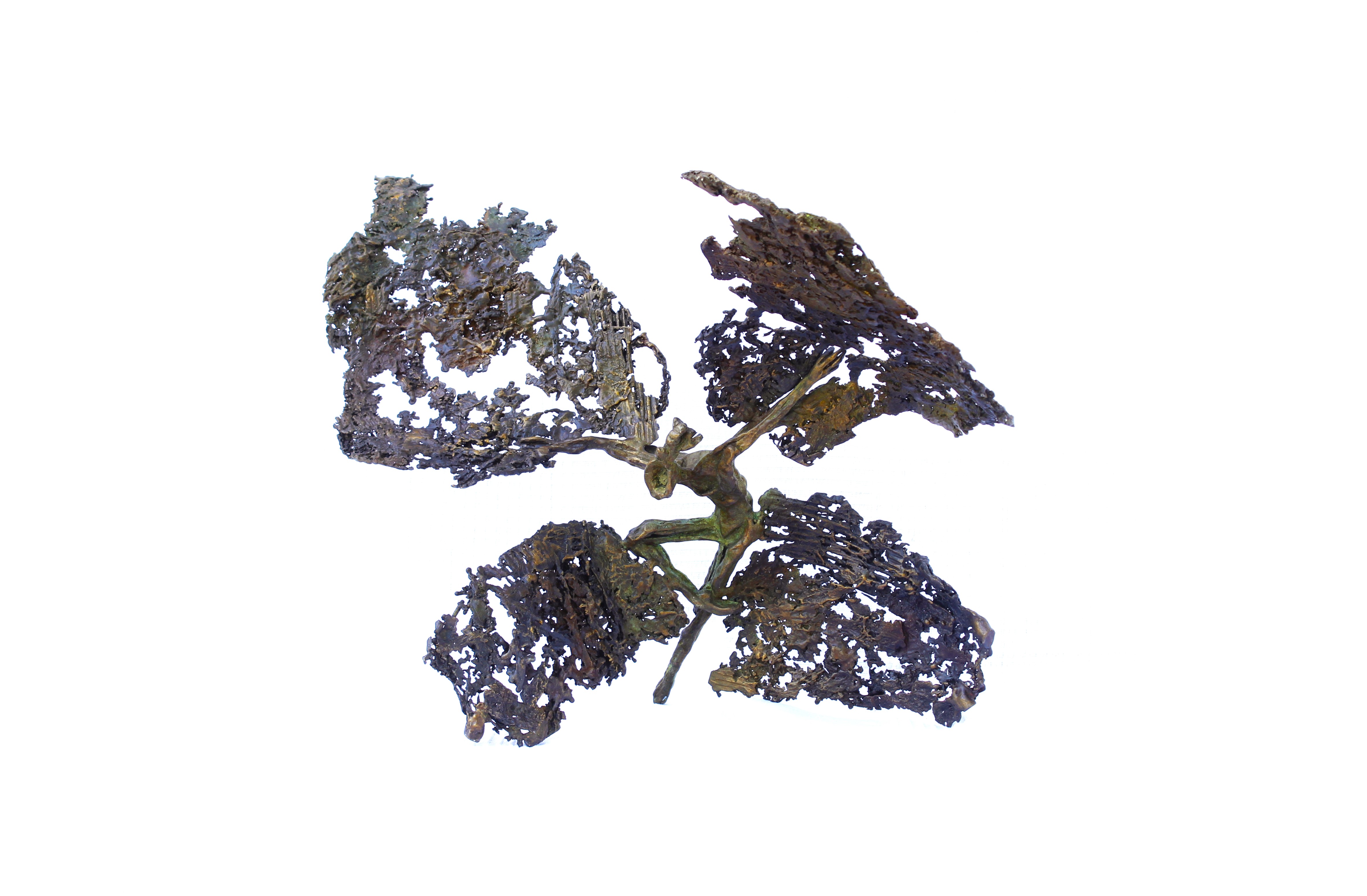 hacia el firmamento que indica todo lo contrario, deseo de libertad. La composición y dinamismo de las extremidades, la colocación de las alas, así como los colores empleados en la pátina, sugieren la elevación y ascensión de la figura desde el infierno hacia el cielo, en forma de ángel, y simboliza la remisión del Mal frente al triunfo del Bien.