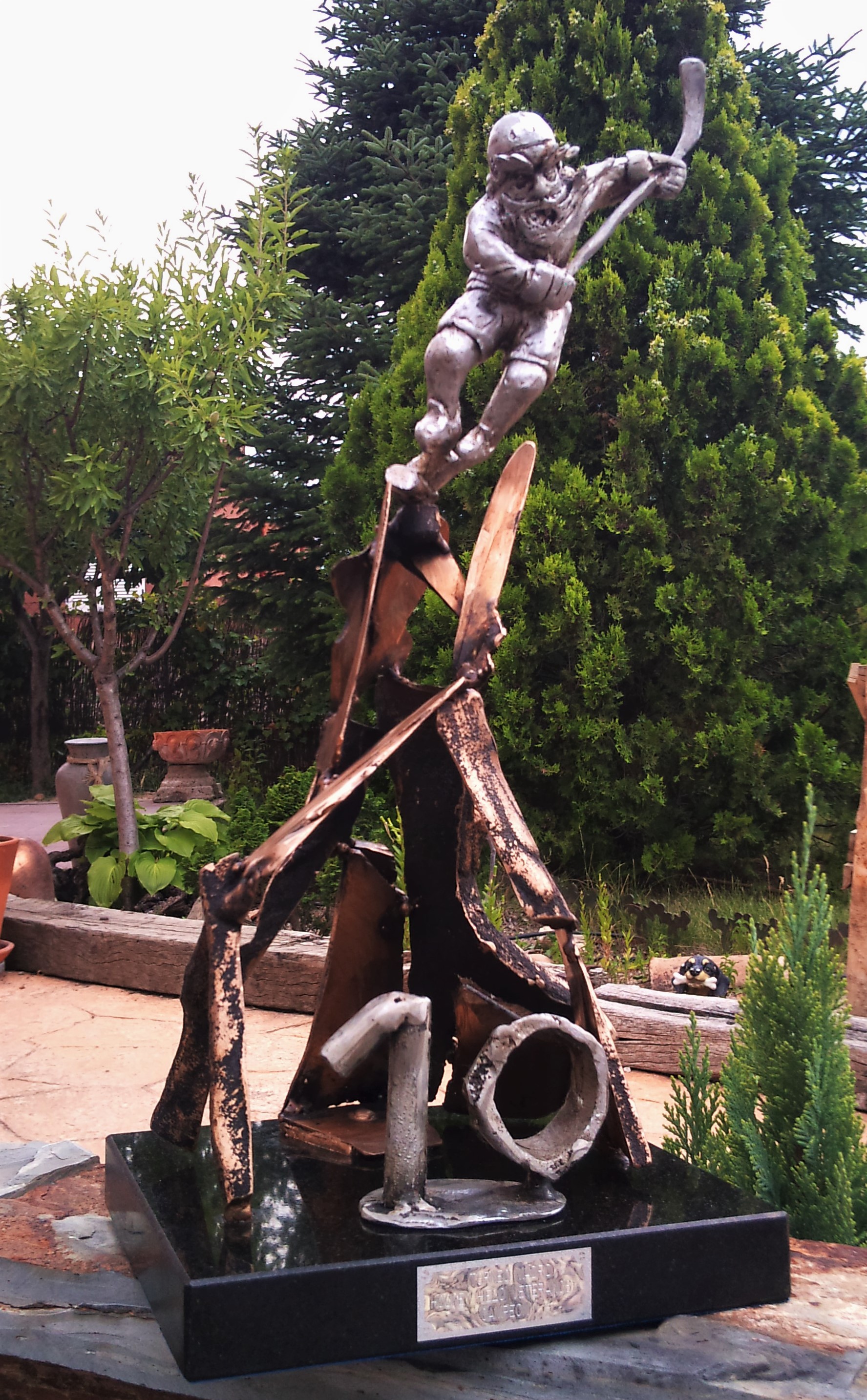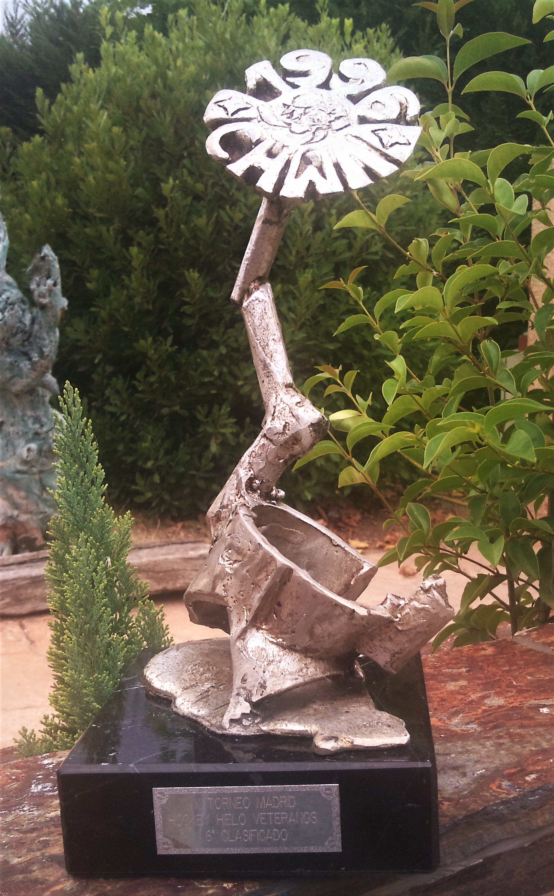 Resina de poliéster, viruta de hierro, aluminio, hierro y madera