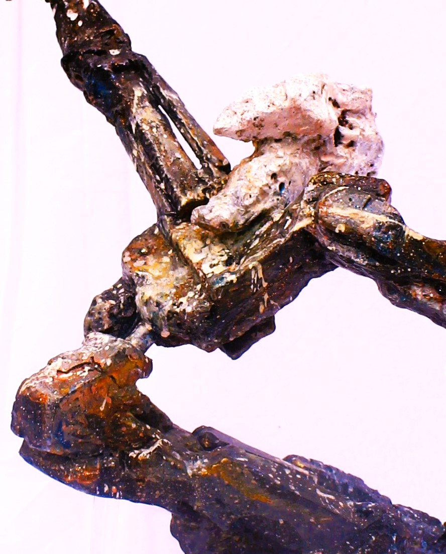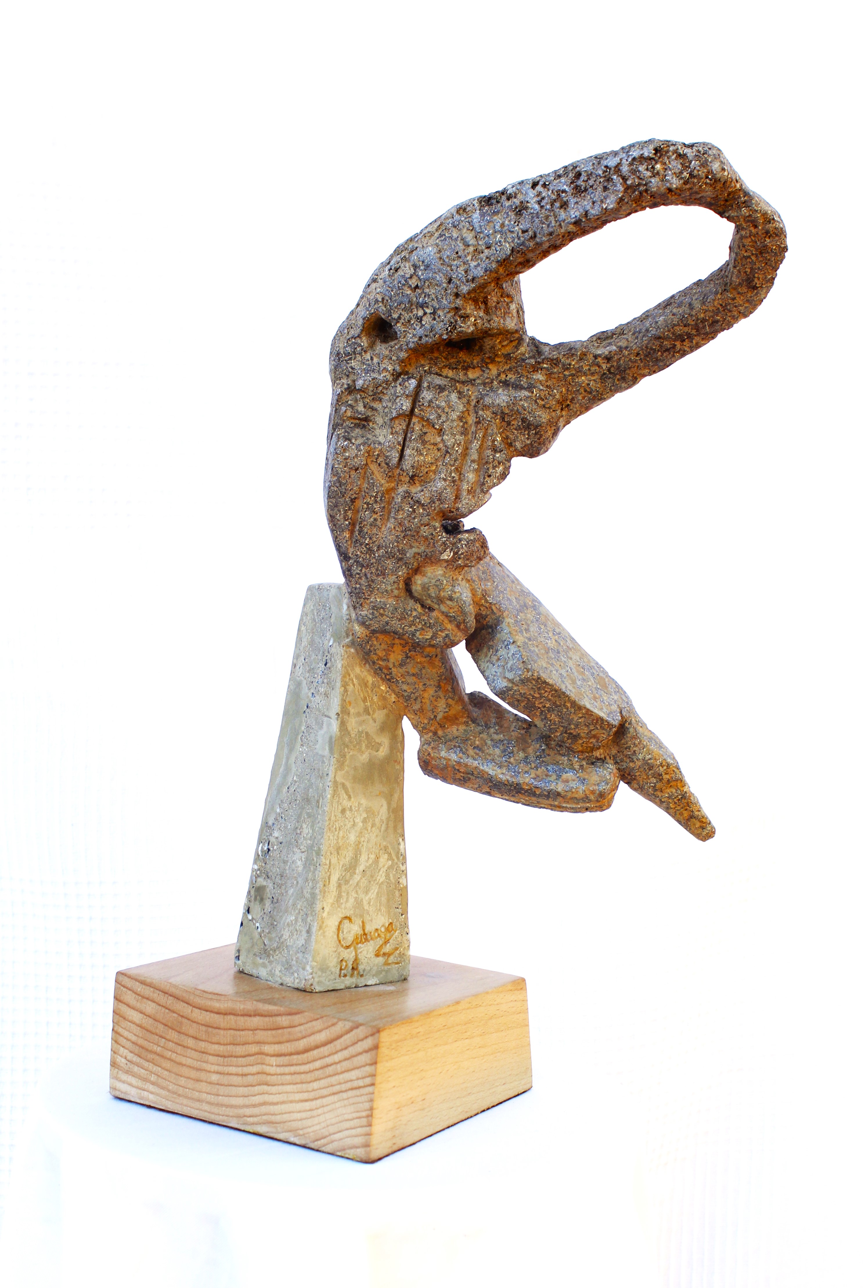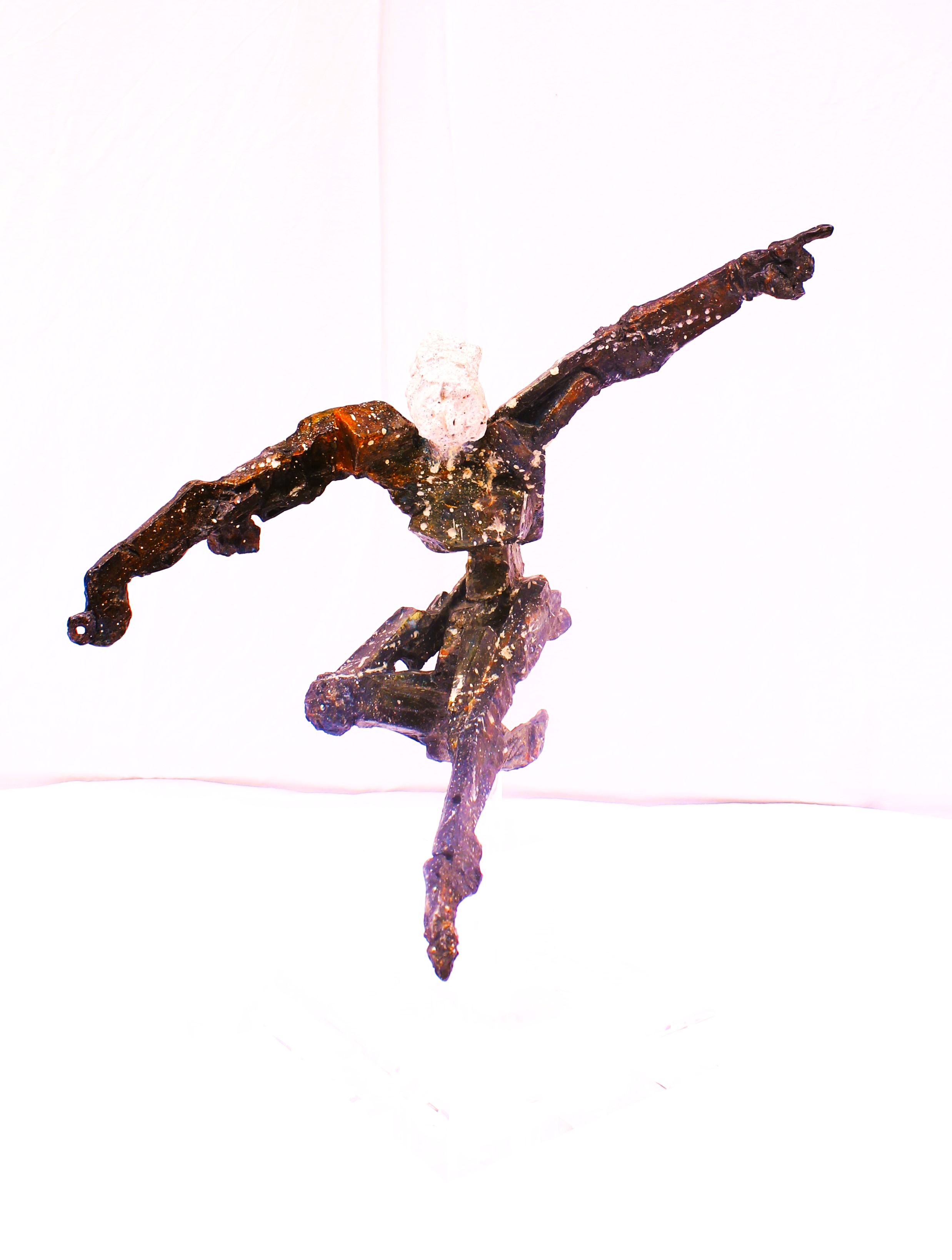 Como en la pintura, mi escultura está basada en la esencia de la figura pero ésta suele estar fragmentada. Quizás, esté más basada en el futuro de su existencia, en su permanencia en este mundo o en el próximo. Es una figura fragmentada por el tiempo, por los sucesos, vicisitudes y contratiempos. Mi obra está basada en la existencia de un mundo infinito donde el cuerpo humano, en un futuro, da paso a la existencia infinita de su alma, pero desmenbrada; tanto más cuanto más haya padecido o mal actuado el hombre. Su existencia plena dependerá de los actos realizados en su periodo de vida materialista. Su alma será tanto más pura cuanto más puro, sincero y digno haya sido. Nuestra alma vagará por el universo infinitamente contemplando su maravillosa creación pudiendo disfrutarlo dependiendo de lo quebrada que esté su figura.